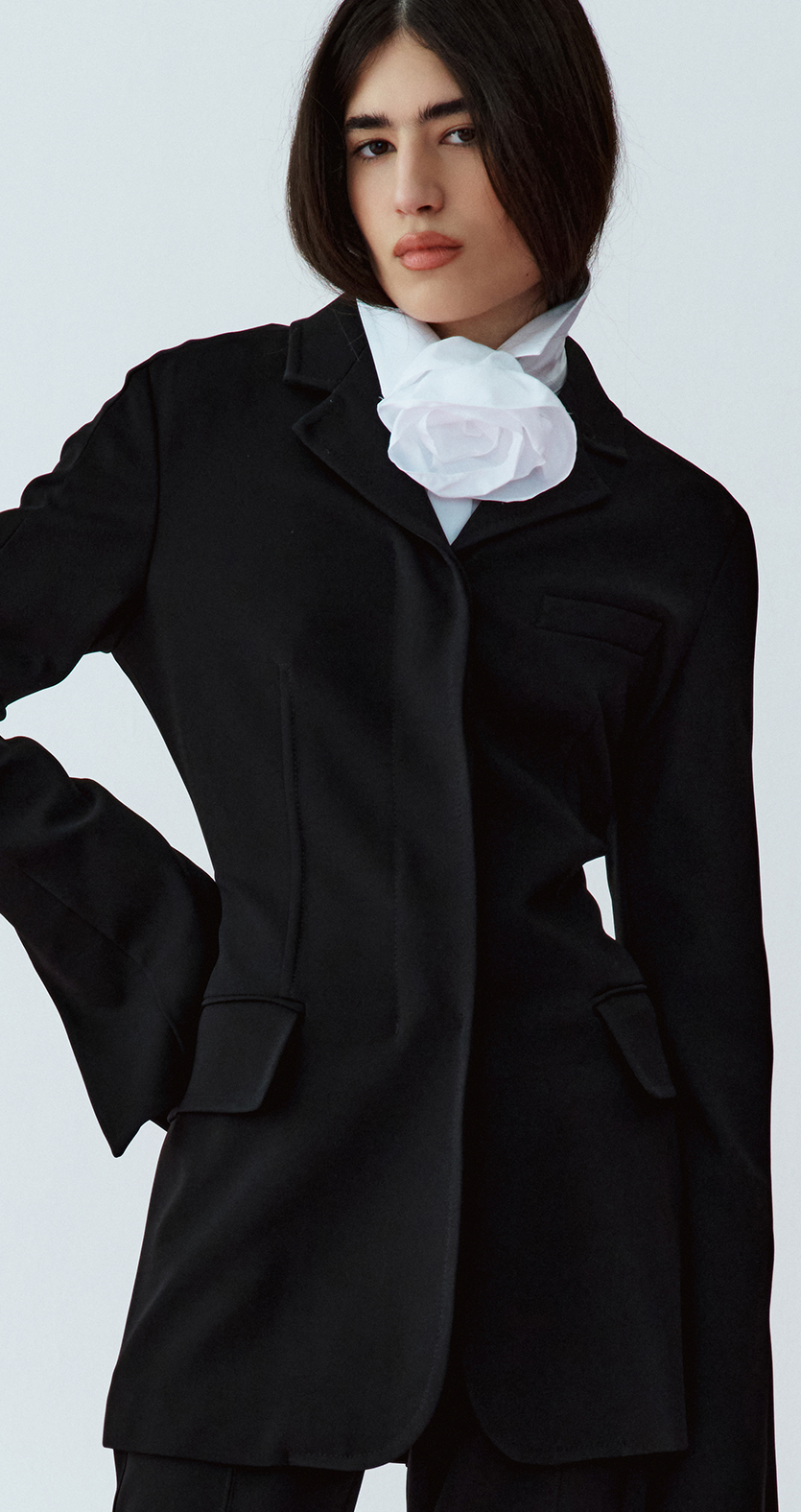Double-breasted satin cape