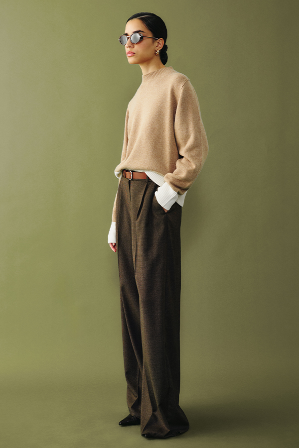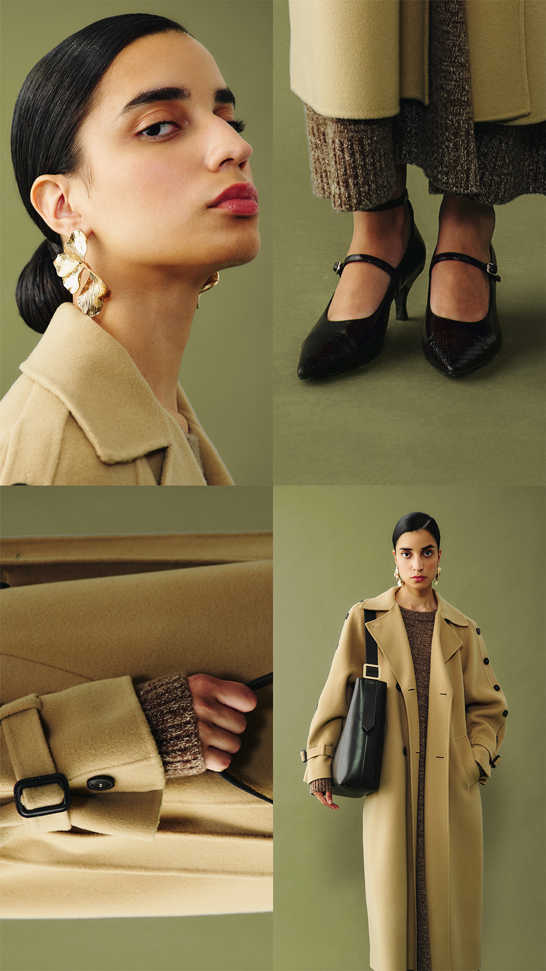 Elegance lies in the details and subtle shades. This season we celebrate the refinement of beige and its many shades, melting seamlessly into chocolate brown. These versatile colours suit every piece: from soft sweaters to our tailored coats, from fluid skirts to trousers that define the silhouette. An invitation to create layered looks with a palette of sophisticated and timeless colours.