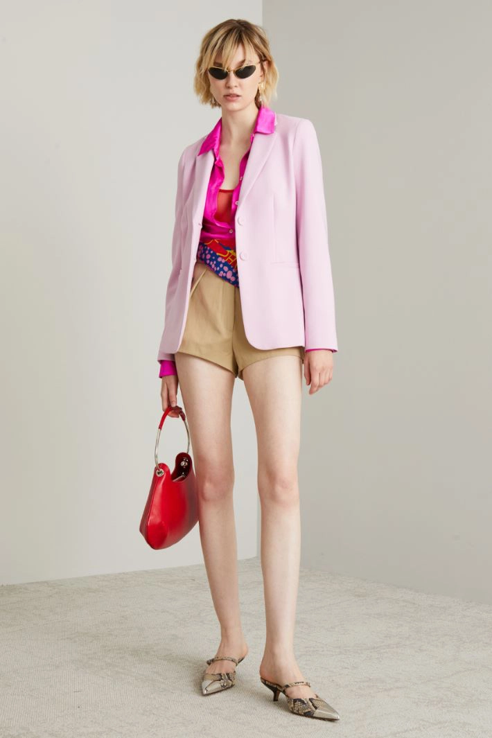 Fitted blazer in stretch cady with lapel collar, long sleeves with padded shoulders, front welt pockets and single-breasted fastening with fabric-covered buttons. Lined.