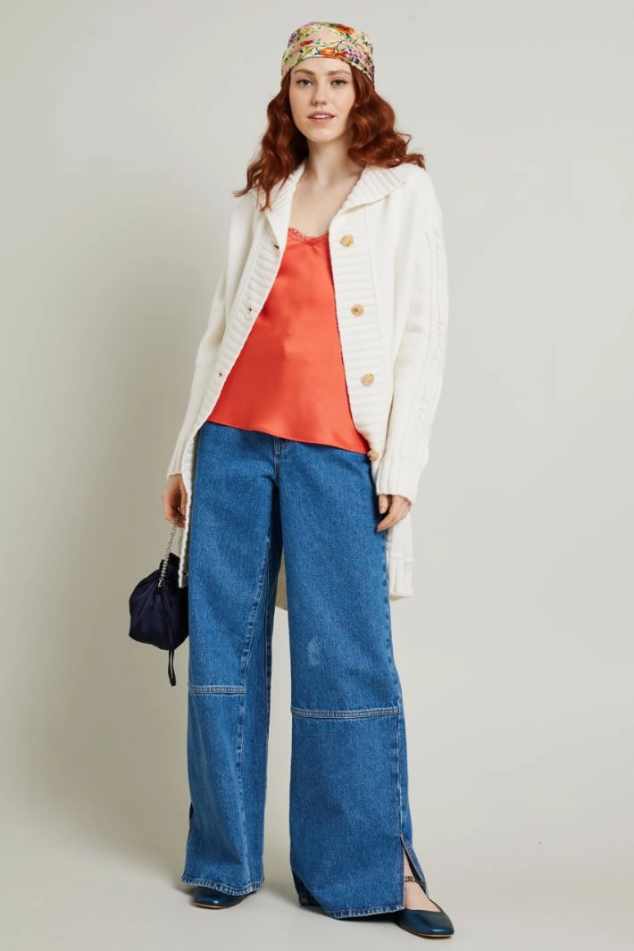 Cardigan with cloth inserts