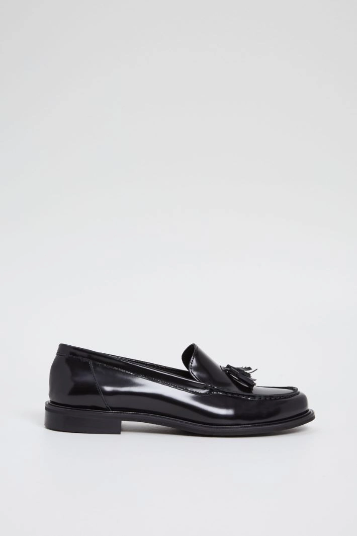 Moccasins in genuine leather with a shiny finish, with tassel motif and stitching on the upper. Leather lining, rubber sole.