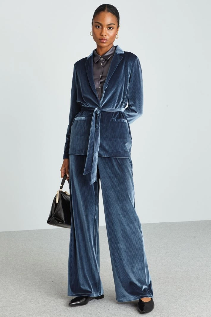 Palazzo trousers in corduroy jersey, with elastic waistband.