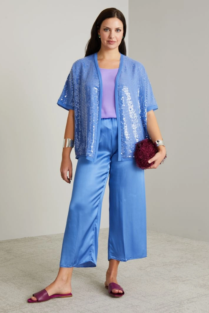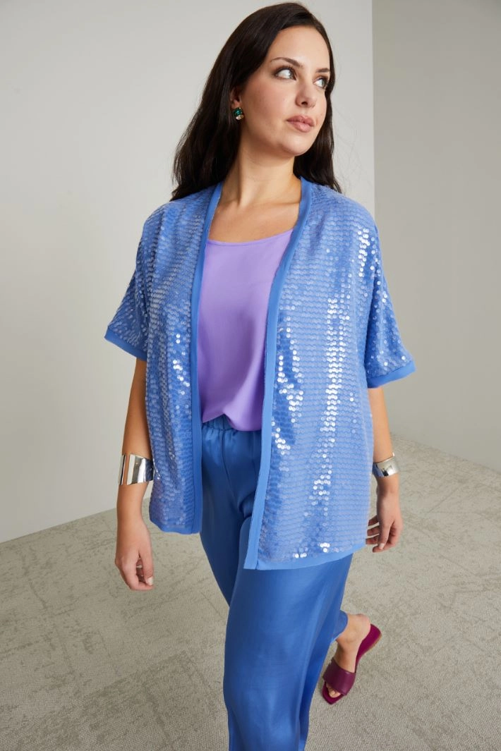 Straight-fit jacket in sequined georgette, with a V-neck and short kimono sleeves. No fastening. Lined.