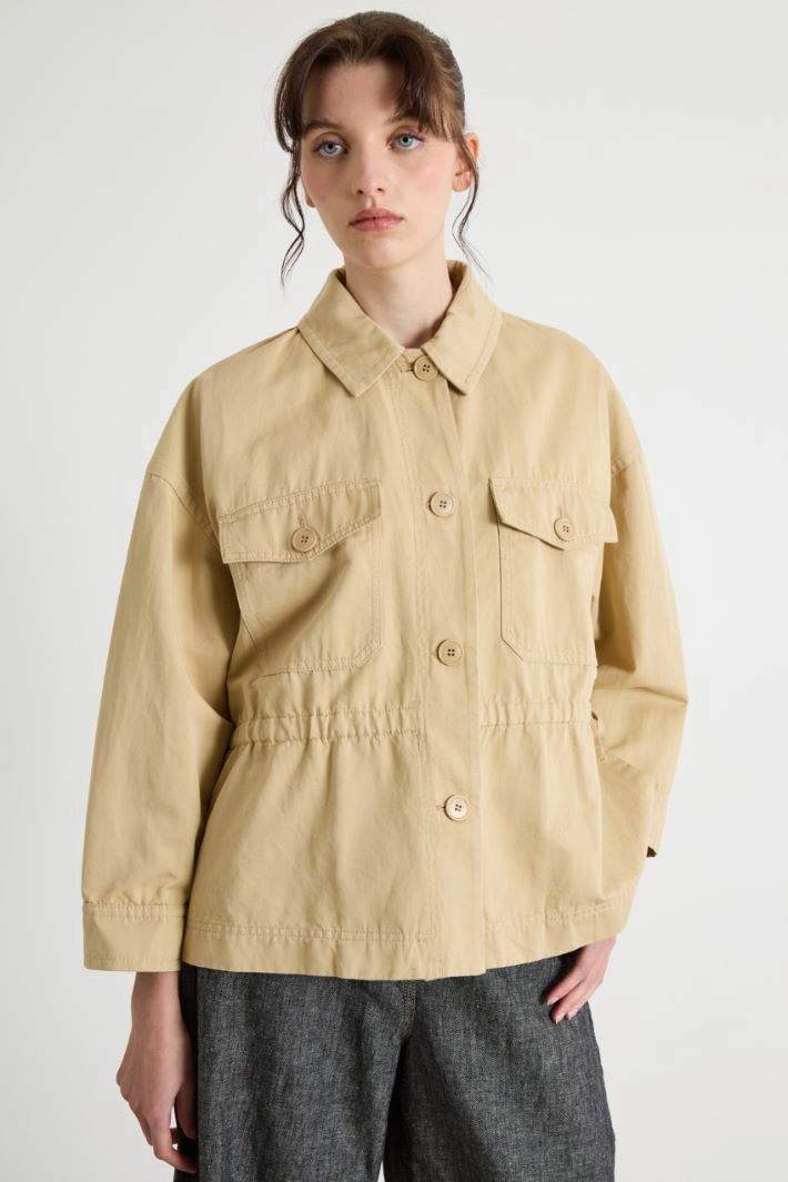 Straight-fit jacket crafted in cotton and linen. This piece features a point collar, long dropped-shoulder sleeves with buttoned cuffs, patch pockets with buttoned flaps and side slits at the hem. Button fastening.
