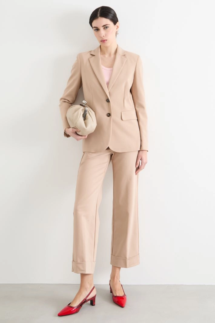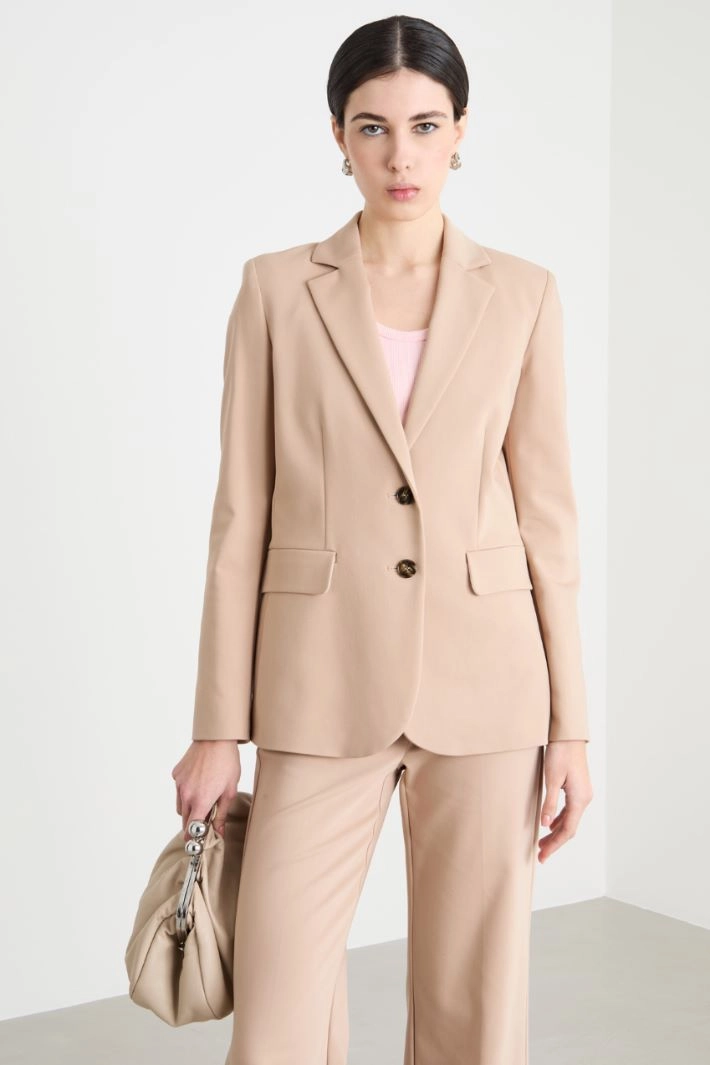 Slim-fit blazer crafted in stretch cotton-blend double cloth, with a lapel collar, long sleeves and side flap pockets. Lined. Button fastening.