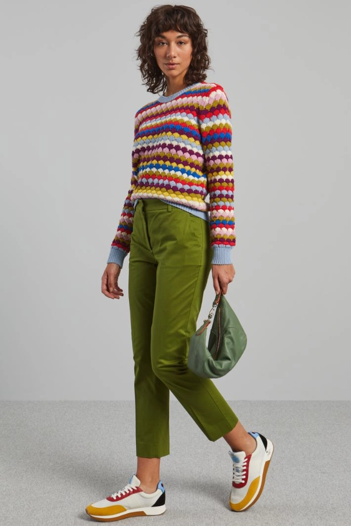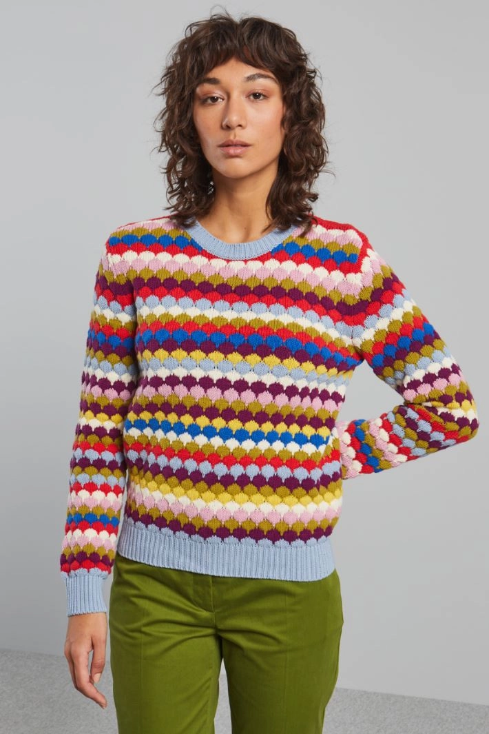 Regular-fit sweater in cotton blend yarn, with fan stitch, crew neck, long sleeves and ribbed trims.