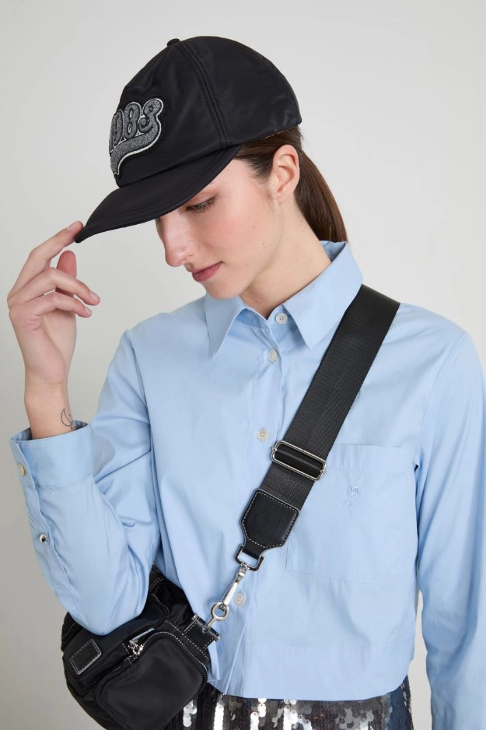 Baseball cap in padded technical fabric, with patchwork detail, rigid visor and adjustable strap.
