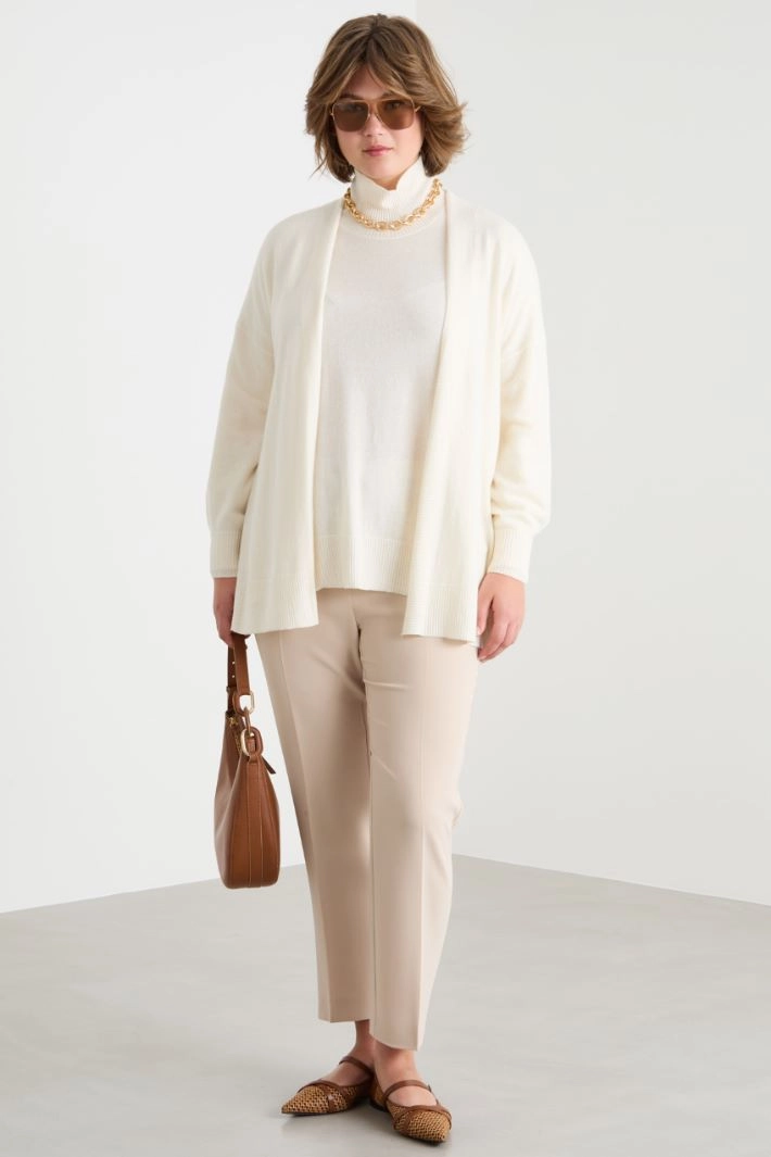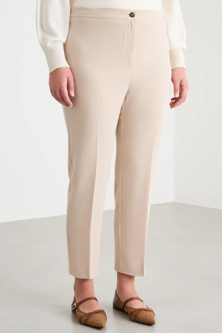 Cigarette-fit trousers in cady, with an elasticated insert on the rear waistband. Fastening with a zip and button.