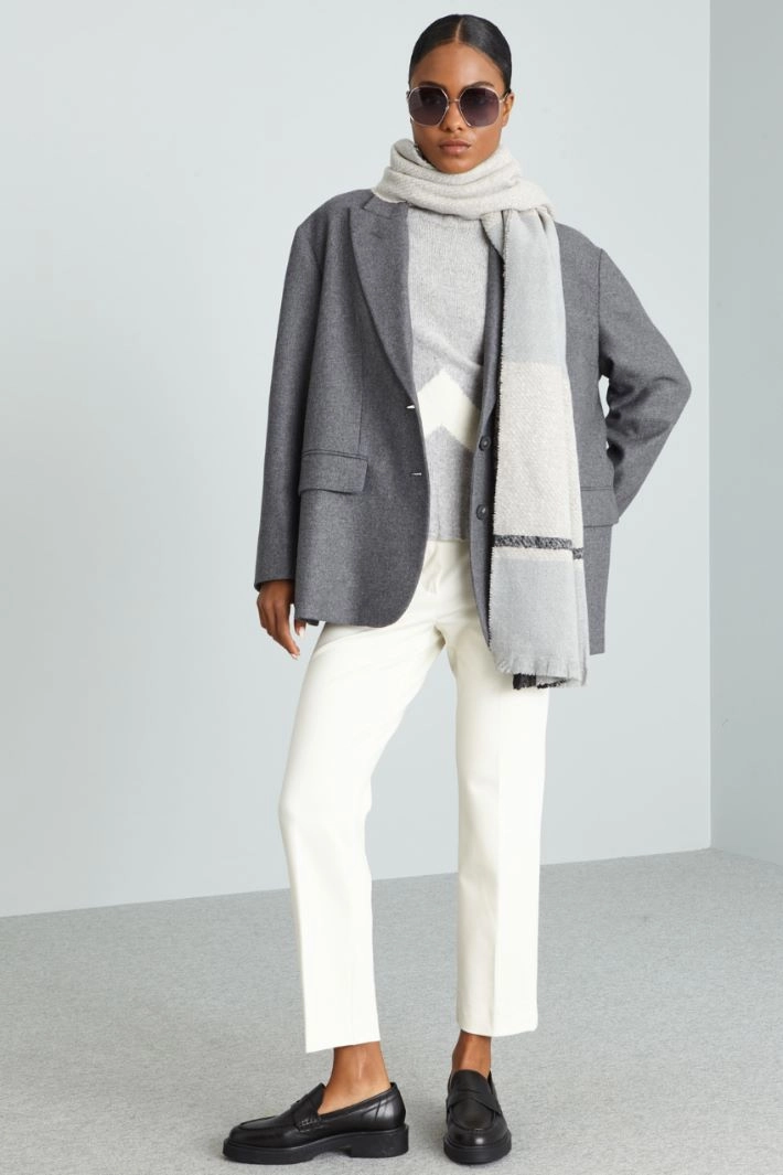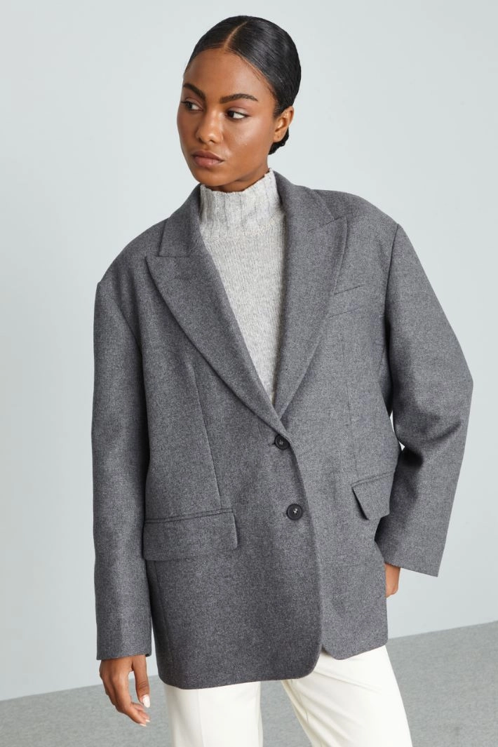 Straight-fit blazer in wool blend flannel, with peak lapel collar, long sleeves with buttons, welt pocket, double welt pockets with flap and vent in the back. Single-breasted button fastening. Lined.