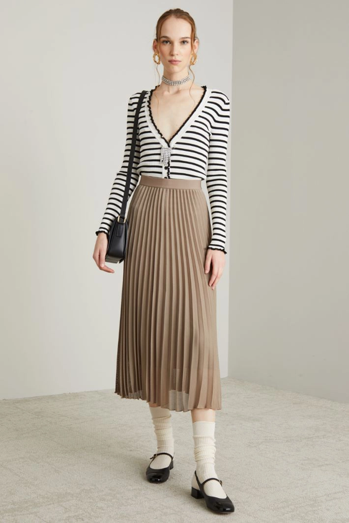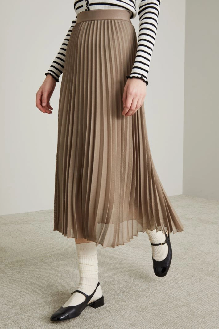 Flared skirt in viscose blend mesh fabric, with pleats and elastic waistband. Lined.