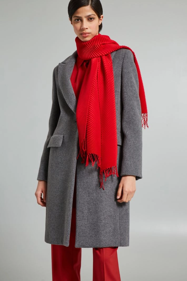 Pleated scarf in viscose blend fabric.