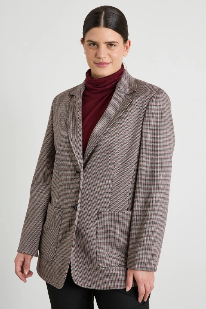 Straight-fit blazer in stretch viscose blend jacquard jersey, with lapel collar, long sleeves and patch pockets. Button fastening. Lined.